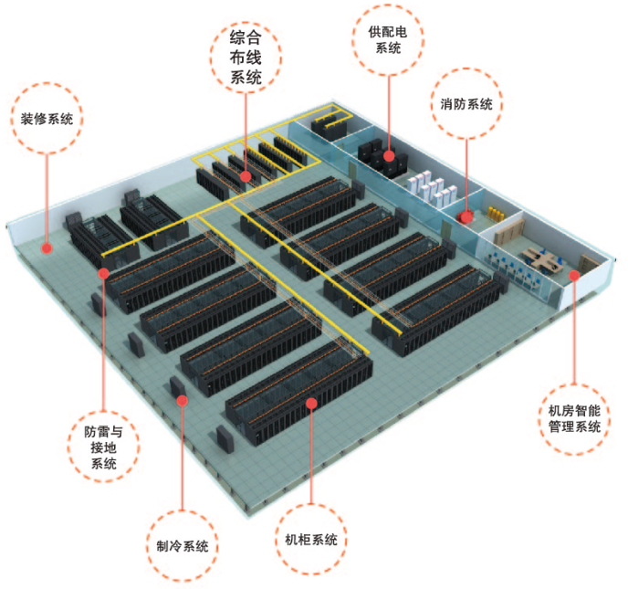 机房可采用架空地板下送风或是列间空调制冷,根据不同功率灵活配置;